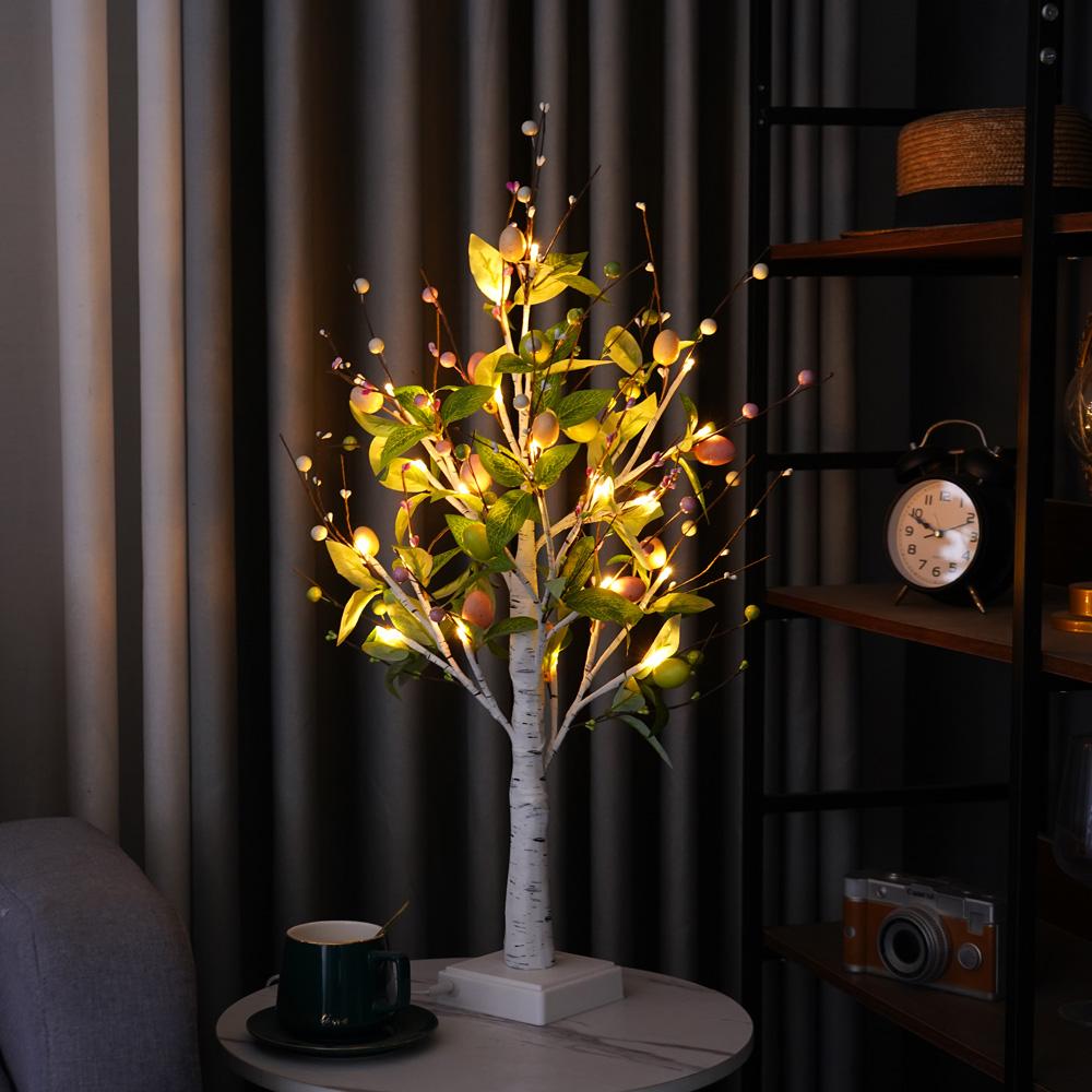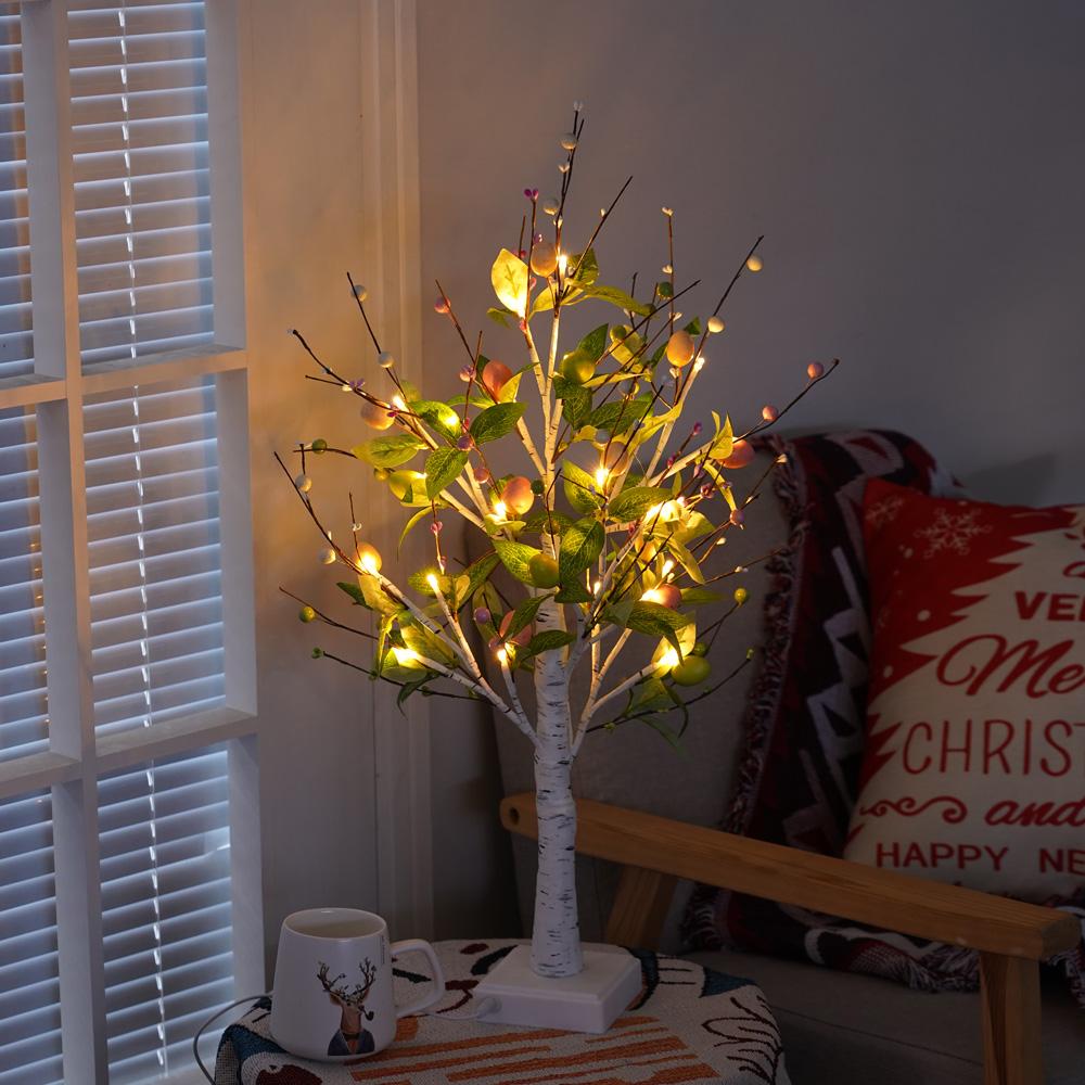 This is a decorative, 60cm tall LED Maple Leaf Tree Light, designed for indoor use. It features 24 warm-white LED lights, along with decorative maple leaves, hazelnuts, and pumpkins. The lamp is dual-powered by either 3 AA batteries or a 5V USB connection, includes a timer function, and has a detachable base for easy storage. It is ideal for holiday decoration, particularly for Thanksgiving, Halloween, Easter Gift and Christmas, as well as for Mother’s Day Gift, Father’s Day Gift and also for daily indoor use.